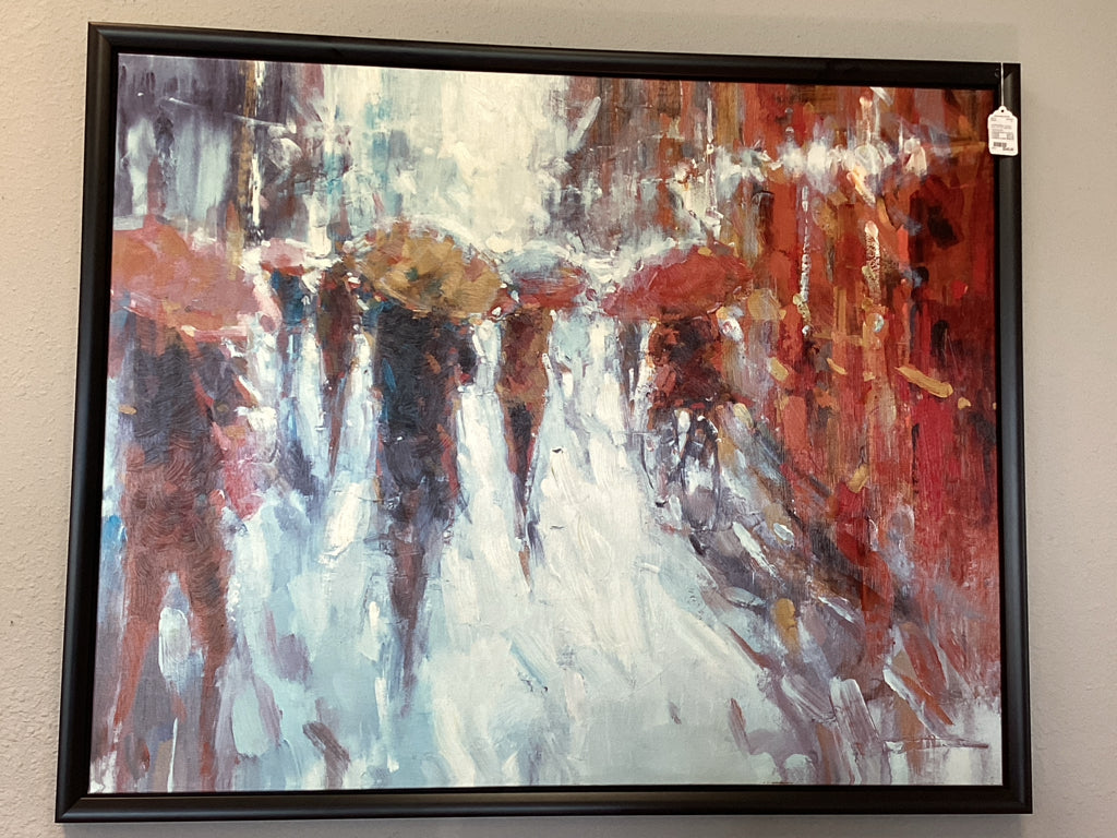 Impressionistic Umbrella/People Scene Oil
