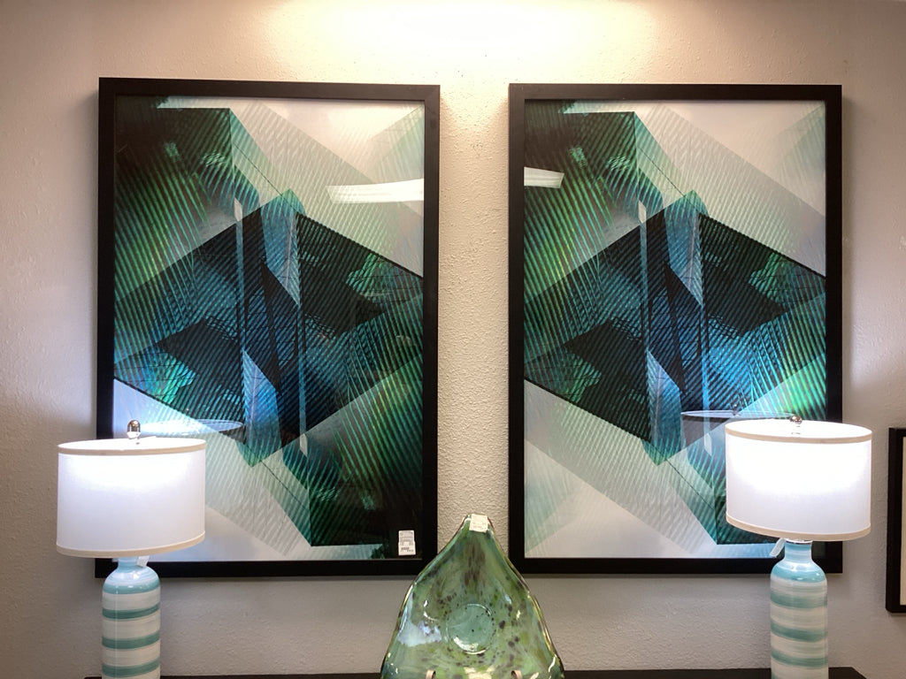 2-piece Abstract, blue, green, black, black frame
