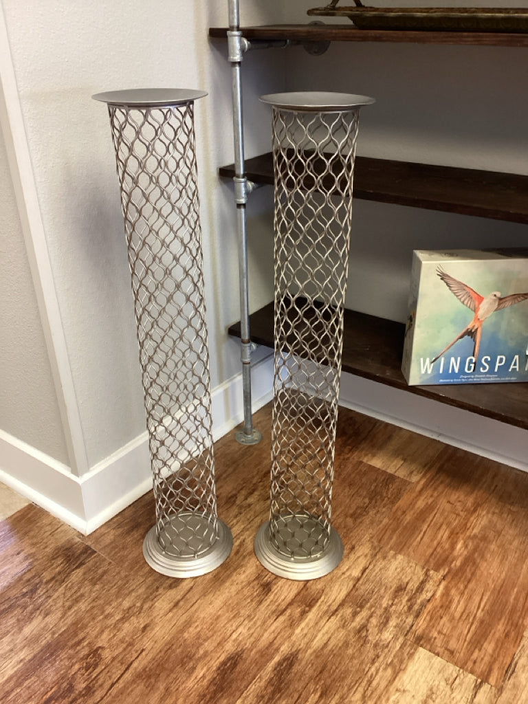 Pair Candle Stands, metal mesh