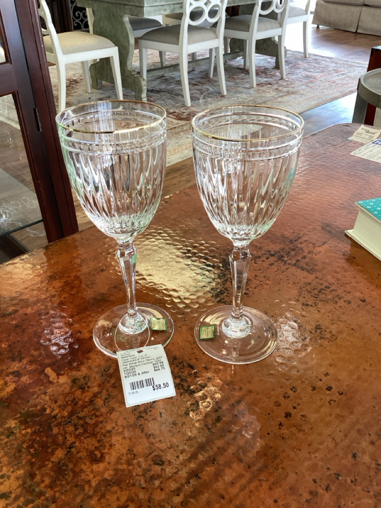 Pair White Wine Stems, gold rim, Marquis Hanover Gold