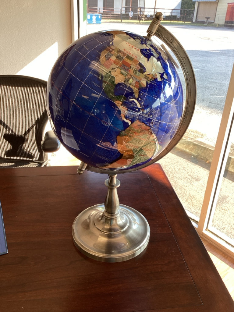 Table top Gemstone World Globe on stand, handmade