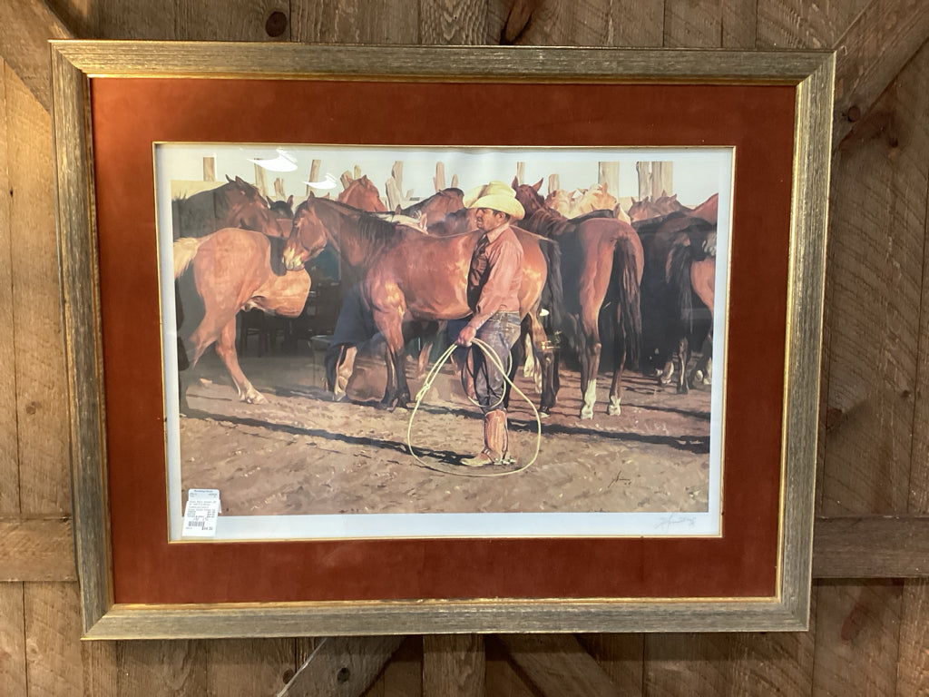 Cowboy and Herd of Horses, AS IS Signed & Number