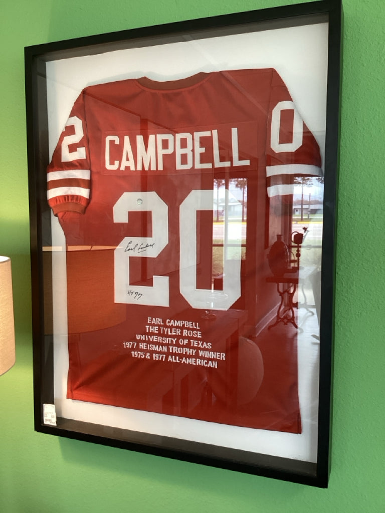 Framed and Signed Earl Campbell Jersey
